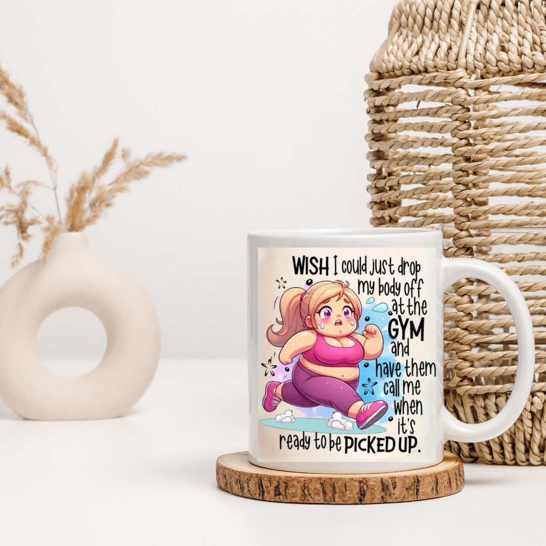 This mug is a must-have for any gym-goer or anyone trying to motivate themselves to get started on a workout plan! Featuring a humorous phrase, it's perfect for those who love to work out and have a sense of humor. Made with durable material, it's the perfect mug to enjoy at home after a tough workout. Stay motivated and laugh with every sip!